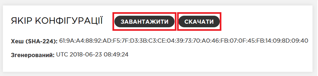 2. Завантажити поточний якір глобальної конфігурації зі ШБО на власну робочу станцію. Для того, щоб завантажити поточний якір глобальної конфігурації необхідно натиснути на кнопку «Скачати» в області «Якір конфігурації».