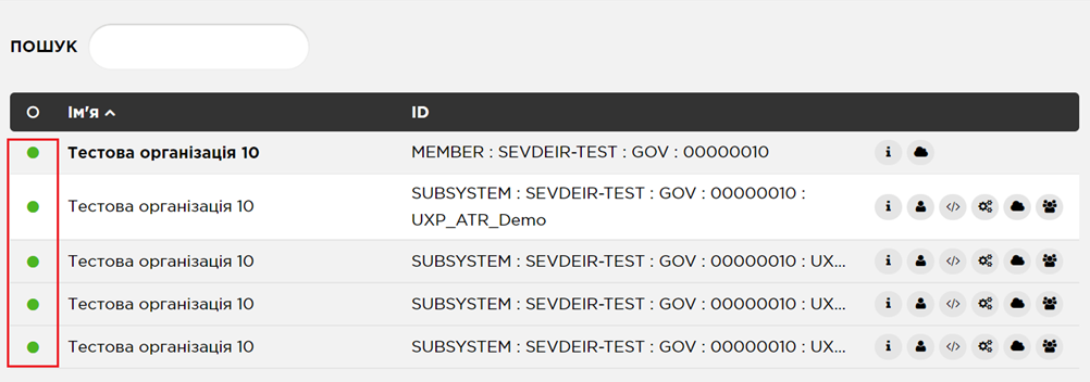 Після виконання Адміністратором системи «Трембіта» заявки з’явиться зелена позначка навпроти підсистеми у вебінтерфейсі та буде забезпечено можливість використання відповідного середовища системи «Трембіта»: