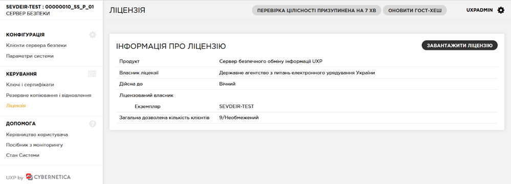 ереглянути інформацію про поточний файл ліцензії ШБО.