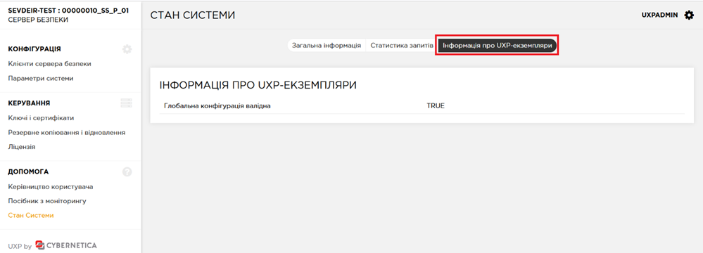 5. Інформацію про валідність глобальної конфігурації. Для цього необхідно перейти на підвкладку «Інформація про UXP-екземпляри».
