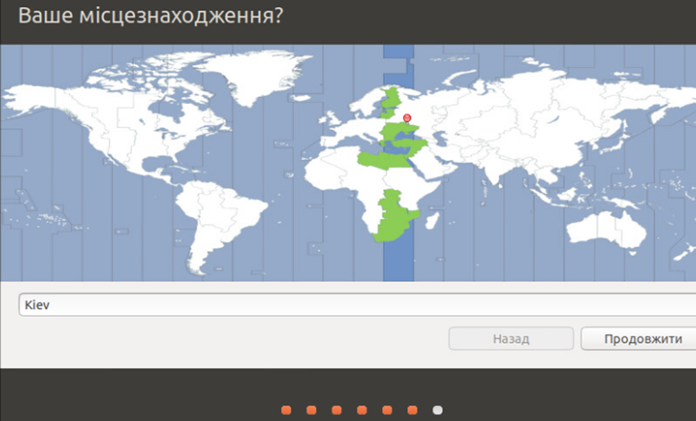 7. Встановити місцезнаходження Kiev (це потрібно для визначення часового поясу):