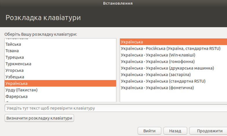 3. Обрати розкладку клавіатури, як показано на рисунку нижче: