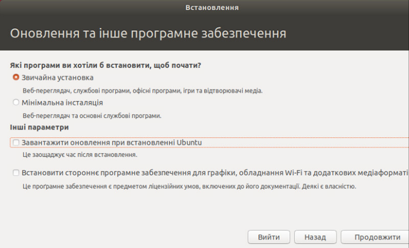 4. Обрати пункт «Звичайна установка», завантажувати оновлення не потрібно: