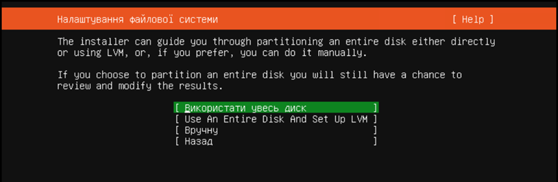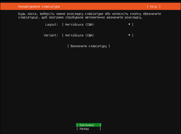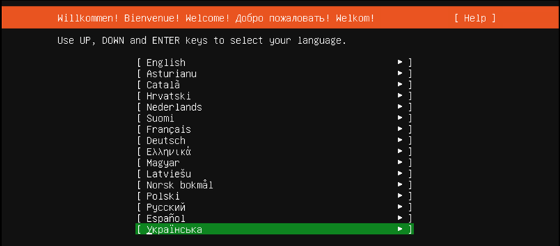 1. Запустити віртуальну машину з підключеним інсталяційним носієм операційної системи Ubuntu Server 18.04.4 x64;