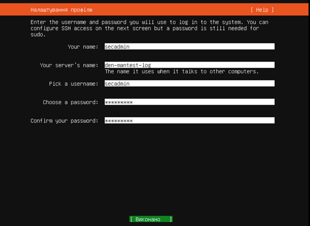 11. Створити користувача (ввести повне ім’я, якщо потрібно, або просто логін), який буде виконувати операції з адміністрування операційної системи (користувач із роллю – Адміністратор локальних компонентів (системний адміністратор)) при подальшому налаштуванні шлюзу безпечного обміну - secadmin: