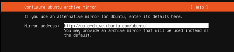 6. Залишити запропоноване значення параметру без змін у меню «Configure ubuntu archive mirror»: