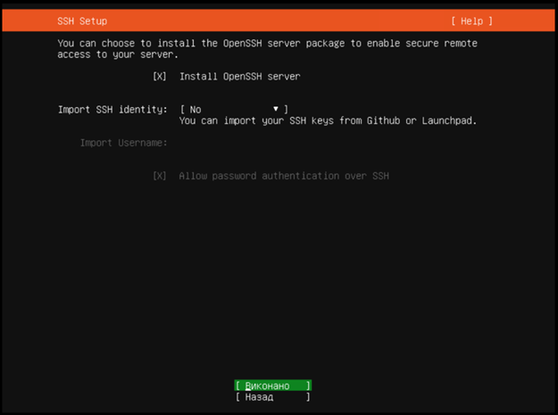 12. Встановити позначку клавішою SPACE навпроти пункту «Install OpenSSH server»: