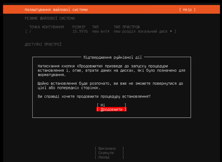 Примітка. Після підтвердження інсталятор почне встановлювати базові компоненти операційної системи. Це може зайняти деякий час.