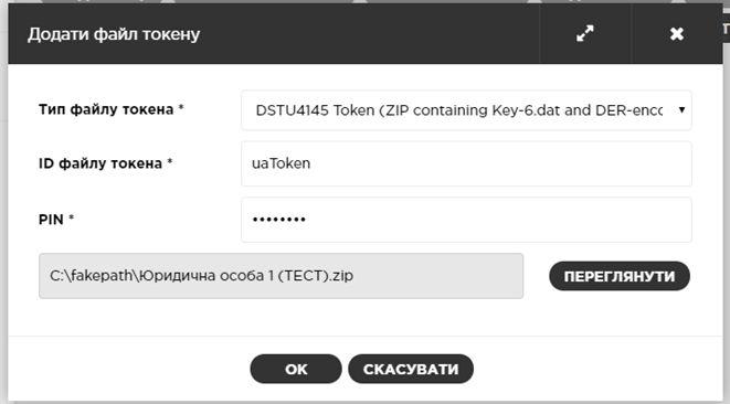 4. У поле «ID файлу токена» ввести зрозумілий ідентифікатор, наприклад uaToken.