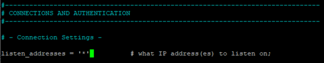 listen_addresses = '*' # what IP address(es) to listen on;