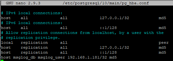 host <msglog_db> <msglog_user> <IP_адреса_ШБО>/32 md5