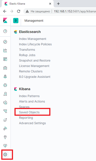 2. Зайти в розділ «Management > Saved Objects» вебінтерфейсу Kibana:
