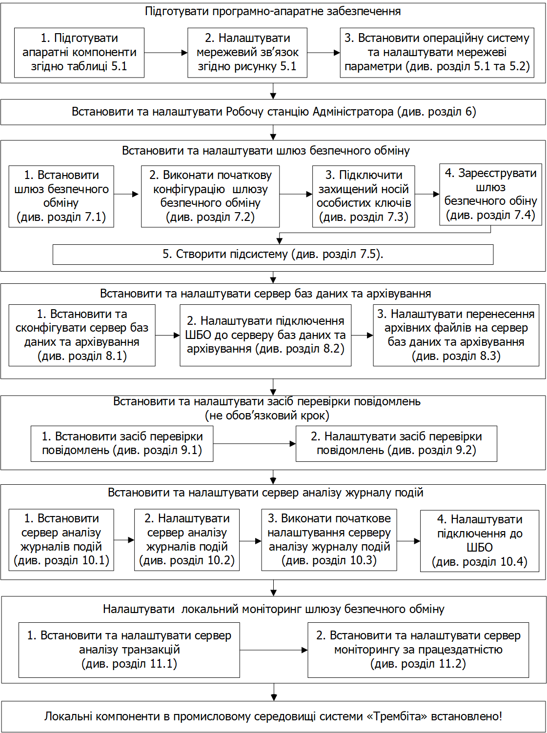 Рисунок 4.1 – Блок-схема алгоритму встановлення локальних компонентів системи «Трембіта» в промисловому середовищі