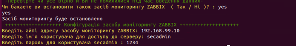 5. Для встановлення системи моніторингу Zabbix необхідно ввести «Так» (або «yes»):