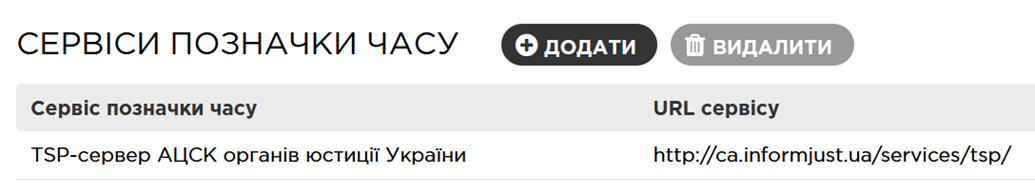 2. Натиснути на кнопку «Додати» в секції «Сервіси позначки часу».