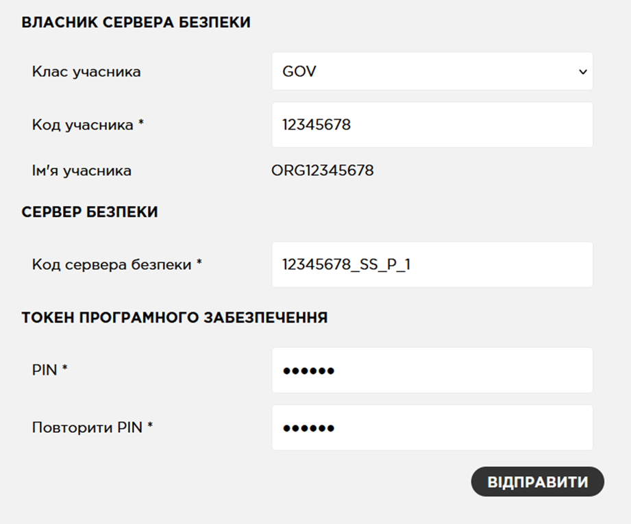 Необхідно придумати PIN-код, який буде використаний для захисту ключів автентифікації, що зберігаються у програмному сховищі (файловій системі ОС). Важливо! Адміністратор вебсервісів має зберігати PIN-код у безпечному місці, оскільки після втрати PIN-коду необхідно відновлювати токен, повторно видавати та реєструвати новий сертифікат автентифікації. |