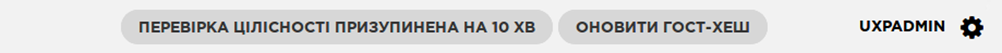 Примітка. Варто звернути увагу, що на шлюзі безпечного обміну в промисловому середовищі працює модуль контролю цілісності. Необхідно перевіряти значення таймеру у верхній частині сторінки. Якщо користувач не встигатиме завершити необхідні налаштування, він має натиснути на кнопку «Перевірка цілісності призупинена на ## хв», щоб отримати більше часу. Після завершення налаштувань обов’язково потрібно натиснути на кнопку «Оновити ГОСТ-ХЕШ».