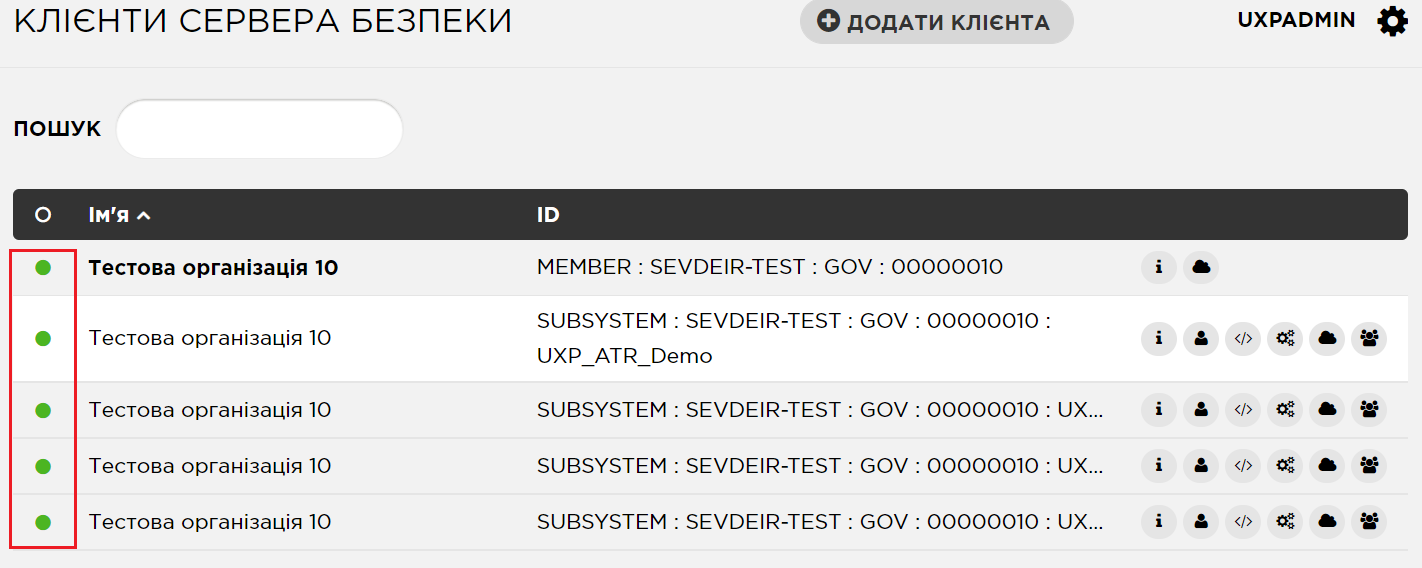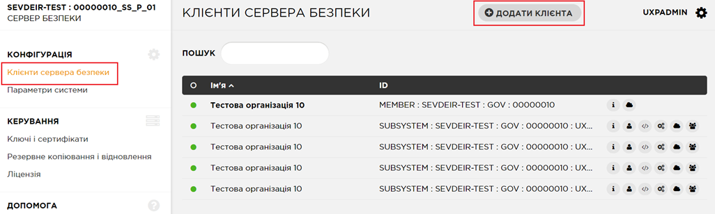 1. Обрати розділ «Клієнти сервера безпеки» та натиснути на кнопку «Додати клієнта».